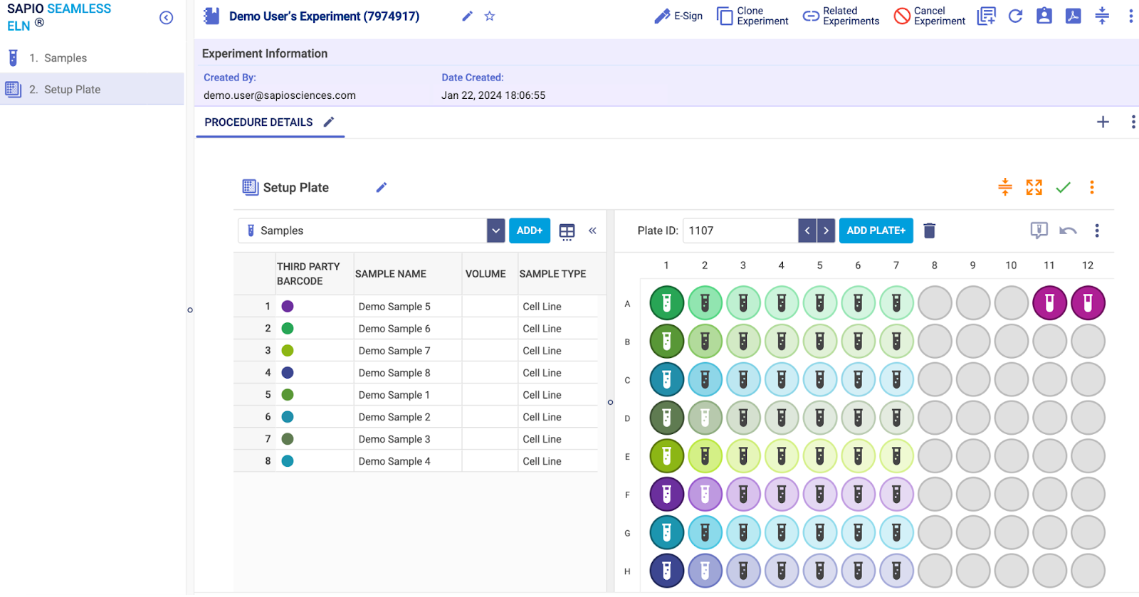 Another useful way to use ELaiN is to let it set up experiments for you. All you need to do is define the experiment’s parameters, such as “Create a plate with 8 cell line samples diluted 3×7 and put controls in A11 and A12”. From this, ELaiN would create a new experiment, saving you the time that would have been spent doing this manually. What’s more, is that ELaiN can create a 3D plate layout for you.